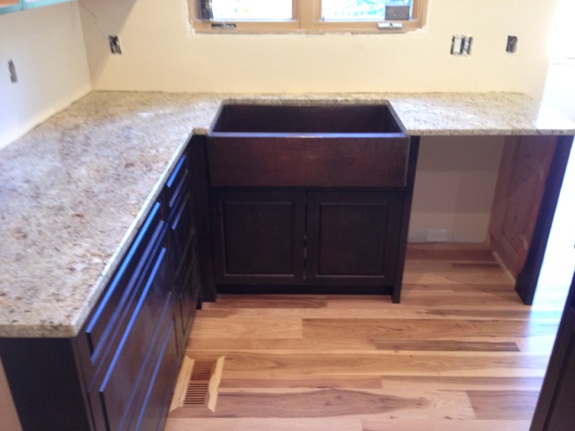 The kitchen island was made from 3cm Atlas granite with a quarter round edge profile and farm sink.