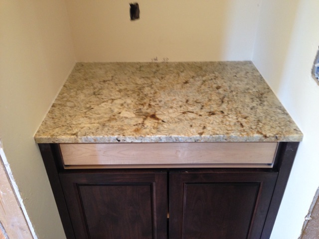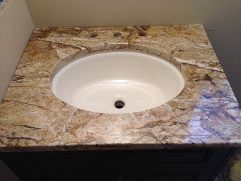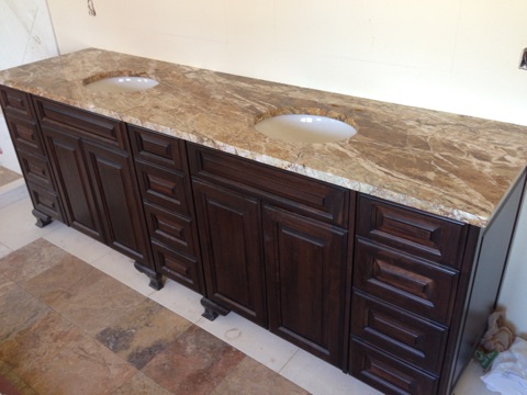 The master, guest and powder vanities were made from 3cm St. Laurent granite with all undermount sink holes and a quarter round edge profile.